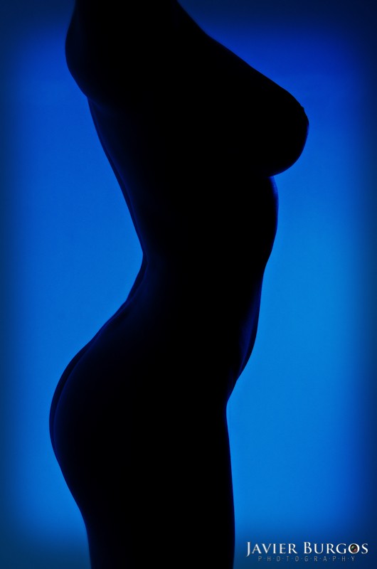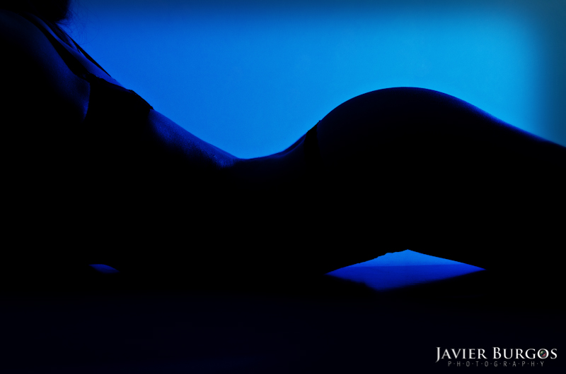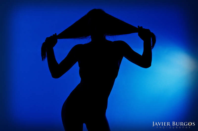 Finalmente hicimos la sesión de "Woman in Blue". Ela cambiaba las posiciones perfectamente para definir la figura de su cuerpo. En eso consiste el proyecto, mostrar sombras de cuerpos femeninos sobre un fondo azul.